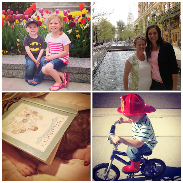 Highlights from May: a field trip to the fire station~ a temple square visit & beautiful tulips~ a special, short visit with Kelli~ Sydney falling asleep reading the Children's Songbook... on her head ~ Cooper riding his bike complete with his fire hat and his beloved boots~ Mother's Day flowers & cards~ Sunday time with cousins... Cooper and Benson crack me up just chatting away~ a very hot day without AC~ Sydney learning how to ride without training wheels!~ beautiful baby gifts, first things for baby sister!~ new roommates & a twin bed for Cooper~ visiting the Grandma Great's grave for the first time... Sydney placed flower petals on each corner with a rock on them to hold them down~ Memorial Day Swimming!~ and our first "firecamp" & smores of the summer season!